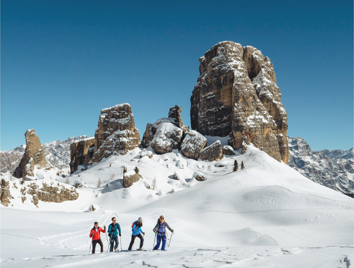 Snowshoes, known locally as ciaspe or ciaspole, turn winter hiking into something almost meditative. Marked routes in and around the Ampezzo Dolomites Nature Park let you walk through larch and fir forests, cross open clearings and reach panoramic huts without sinking into deep snow. Options range from easy, family-friendly loops to more committed outings, usually led by UIAGM-certified mountain guides who adapt distance and elevation to your fitness and snow conditions.